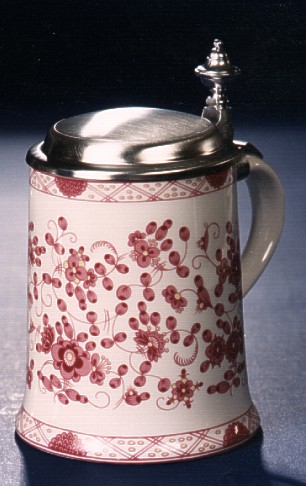Porzellankrug schräge Form mit Zinndeckel