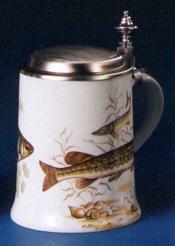 Porzellankrug schräge Form mit Zinndeckel