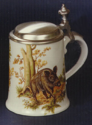 Porzellankrug schräge Form mit Zinndeckel
