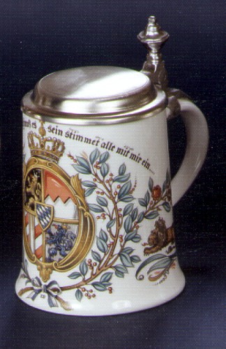 Porzellankrug schräge Form mit Zinndeckel